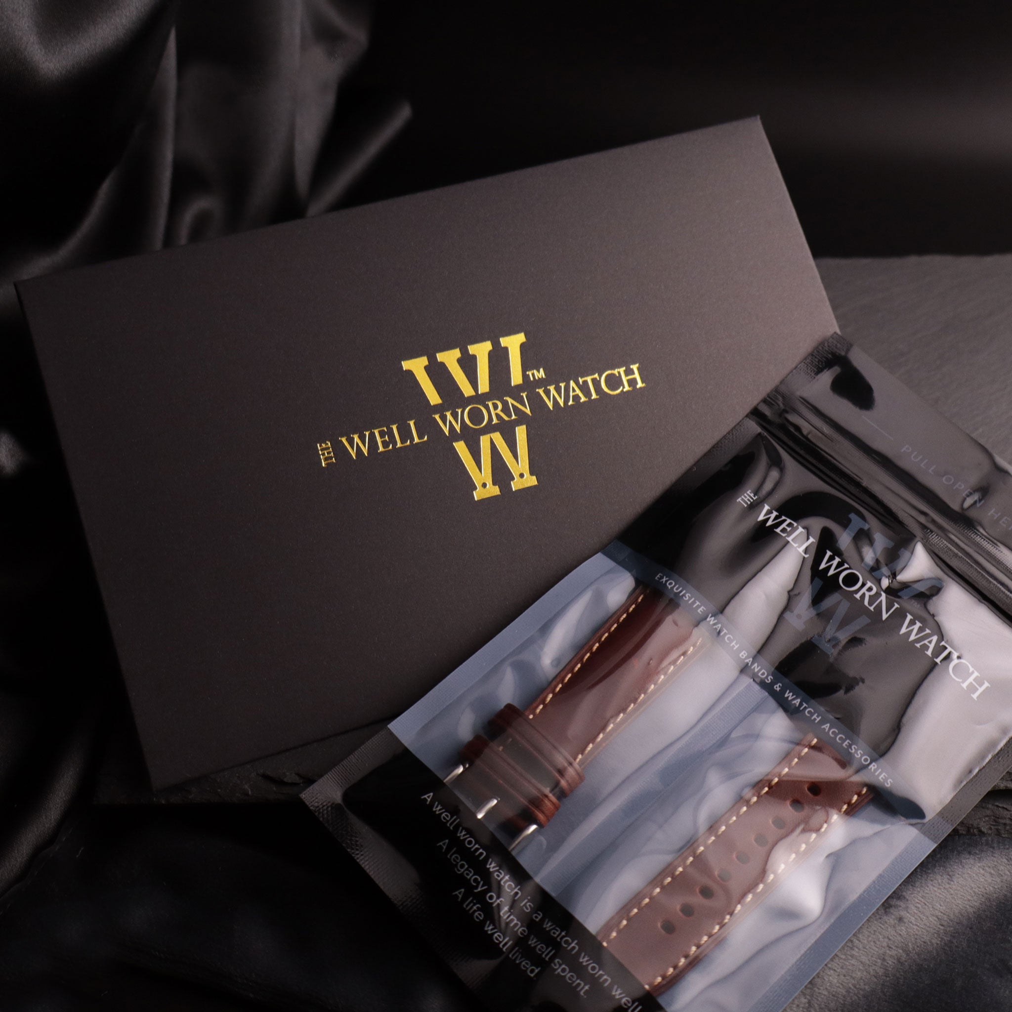 Designed to reflect an exclusive invitation, our premium packaging includes this gold-foil envelope with every strap we ship out. You're our VIP at Well Worn Watch, and you deserve to be treated to the very best.