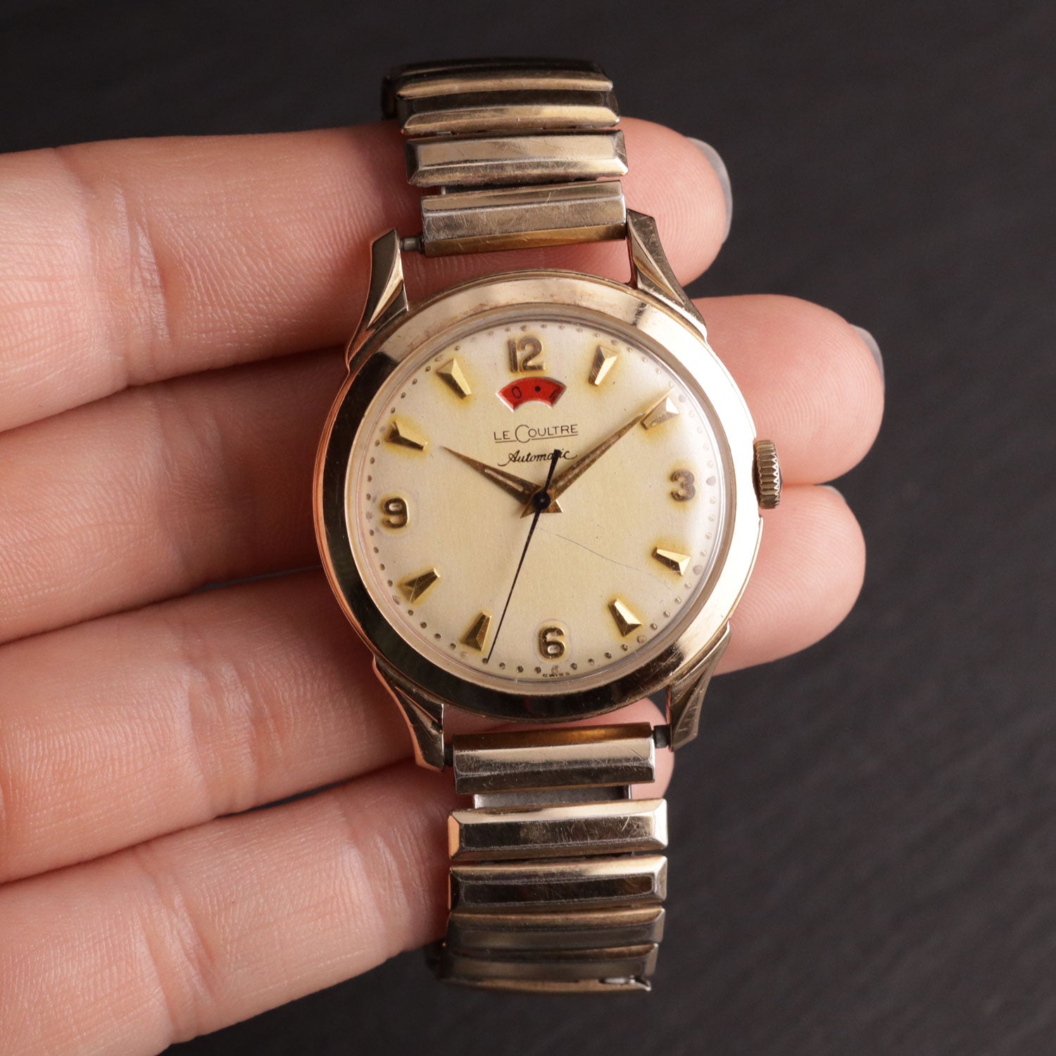 Look no further than the 1950's Jaeger LeCoultre with Power Indicator at 12 o'clock. This gold filled automatic watch is a true gem in the world of horology, combining timeless design with impressi...